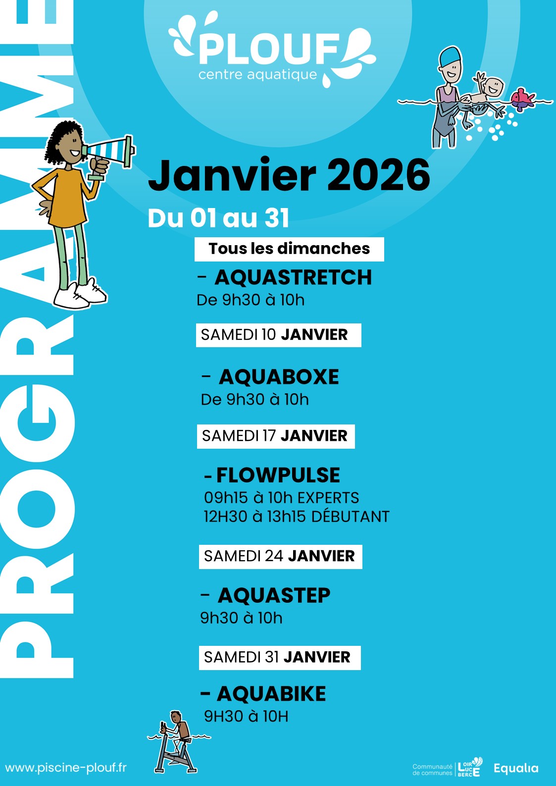 Le Centre Aquatique Plouf est un équipement de la Communauté de Communes de Loir-Lucé-Bercé géré et animé par Equalia.